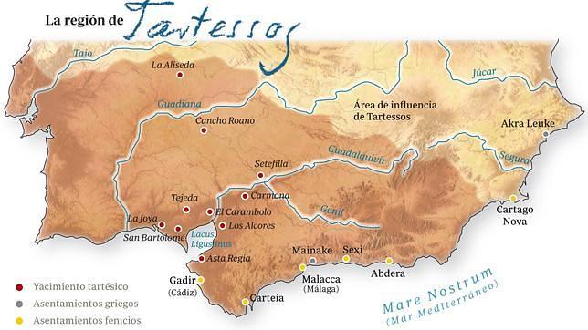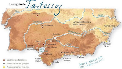 The Greeks were fascinated by the notion of a mythical and fabulously wealthy kingdom in the far west beyond the Pillars of Hercules. It was a rich emporium of valuable and precious metals and the luxurious lives led by its inhabitants linked it in their minds to the legends of Atlantis and Hesperides, the Isles of the Blessed, which were located in the same direction and were maybe even in the same place. They called it Tartessos. Strabo, 58 BC-25 CE, who described it in his work, Geography, was drawing very largely on Herodotos, 484 BCE - 420 BCE, who described in detail the immense wealth and generosity of the Tartessans and particularly of their King Arganthonios, referred to as The Silver One. This included the story of a Greek sailor called Koliaos whose ship was blown off course and landed in Tartessos. After being royally entertained for some months, his ship was loaded up with silver and he was sent home. The story is also told of the Tartessans, in the 6th century BCE, giving the Phocaean Greeks 1 1/2 tons of silver to pay for a defensive wall around their city to keep out the Persians. And yet apart from a few fragments of trade goods in Andalusia in Southern Spain there is neither sign of a Tartessan civilization, nor any indication where the capital city might have been. Not only was Tartessos a legendary place, but also their ships were legendary, and apparently, capable of crossing the Indian Ocean. This civilization was also mentioned by the Egyptians.